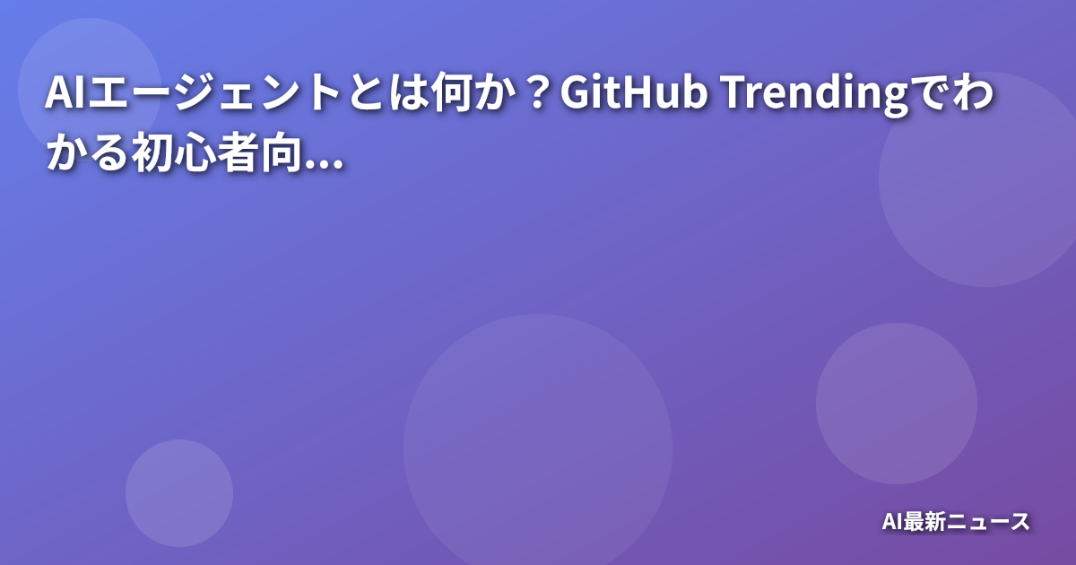 この記事では、コードを書いたことがない人でも読めるように、AIエージェント とは何かをやさしく整理します。さらに、GitHub Trendingで人気の公式リポジトリを手がかりに、いま何が流行っているのか、どこに注目すればよいのか、初心者はどう触れ始めればよいのかまでまとめます。