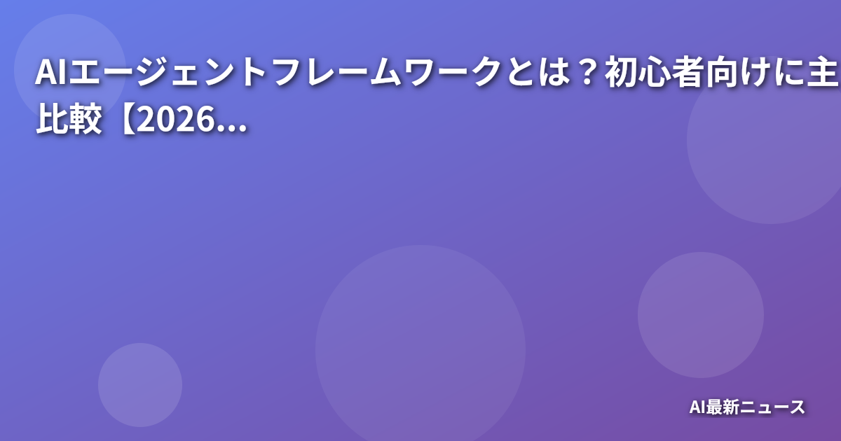 AIエージェントフレームワークとは?初心者向けに主要ツールを比較【2026年版】