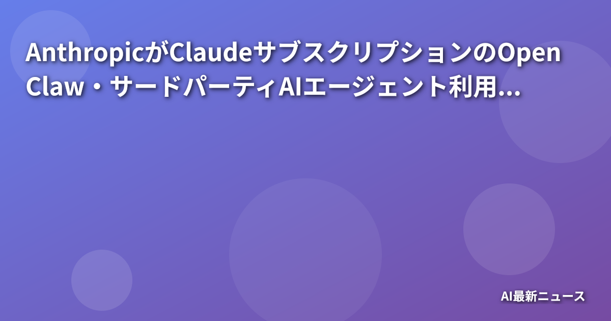 AnthropicがClaudeサブスクリプションのOpenClaw・サードパーティAIエージェント利用を禁止