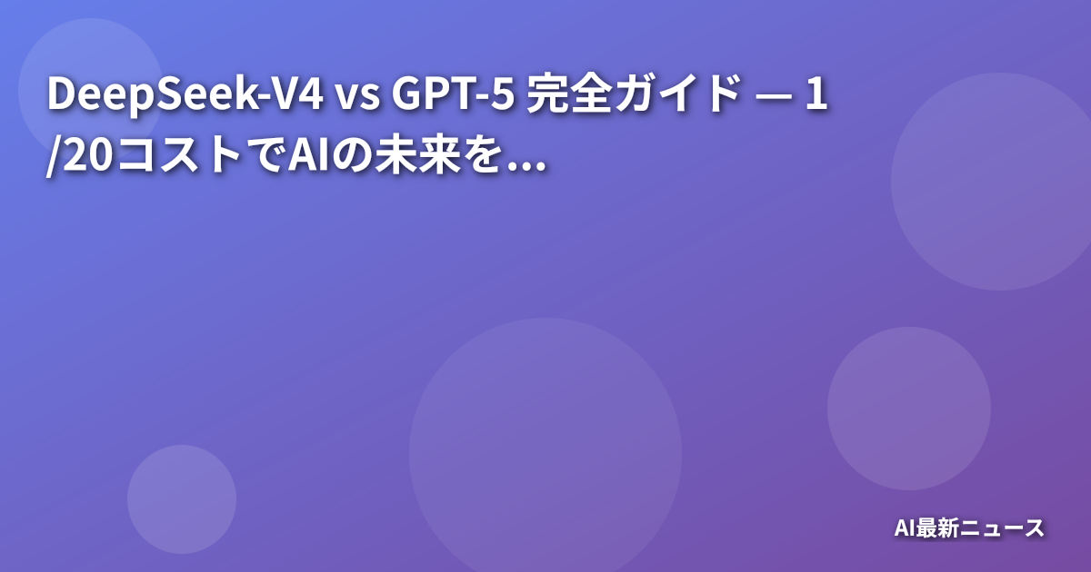 # DeepSeek-V4 vs GPT-5 コスパ対決|2026年最強AIモデルを初心者向けに徹底比較
