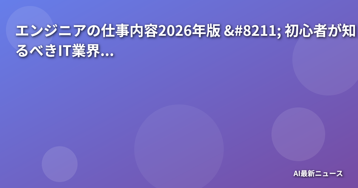 エンジニアの仕事内容2026年版 – 初心者が知るべきIT業界のリア