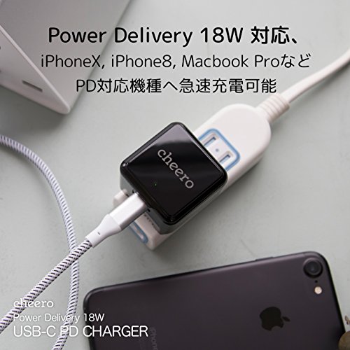 cheeroの18W出力powerdelivery対応充電器。通常充電と急速充電で充電する際に使用しました。通常充電は端末側の方で急速充電をオフにして測定しました。