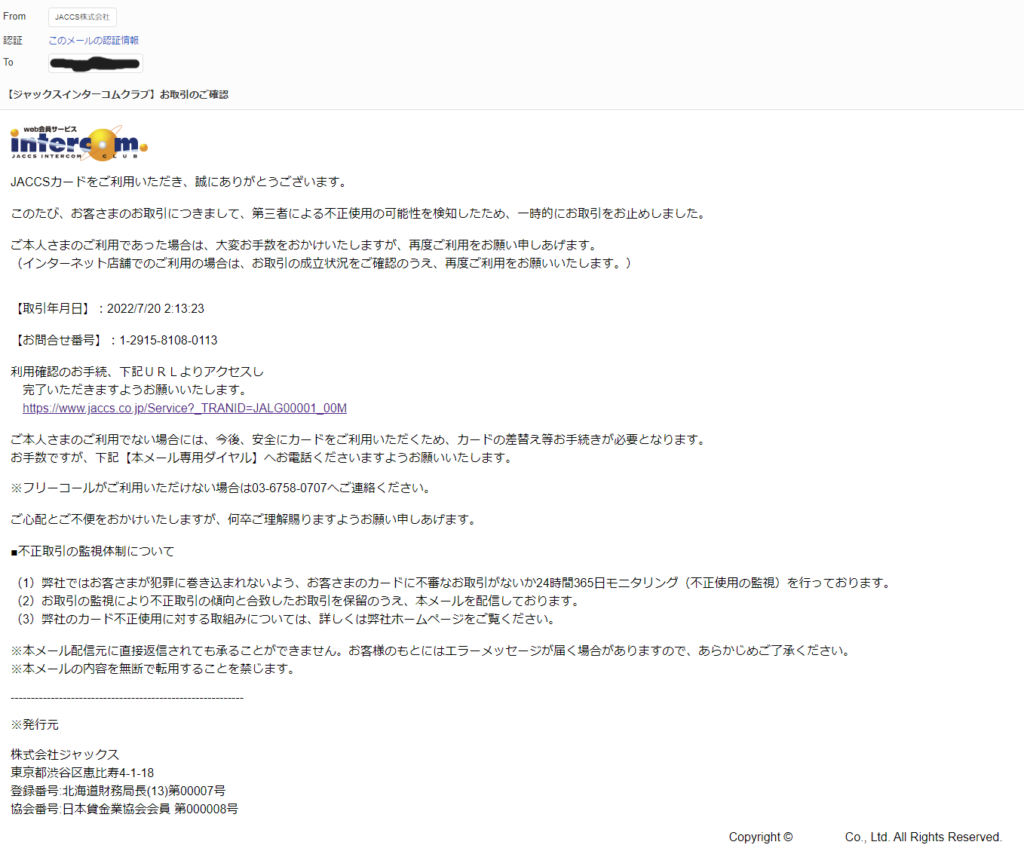 ほぼ使用していないYahoo!メールであり、ジャックスカードも作成したことがなかったため、最初は動揺しましたが直ぐにフィッシング詐欺メールだとわかりました。